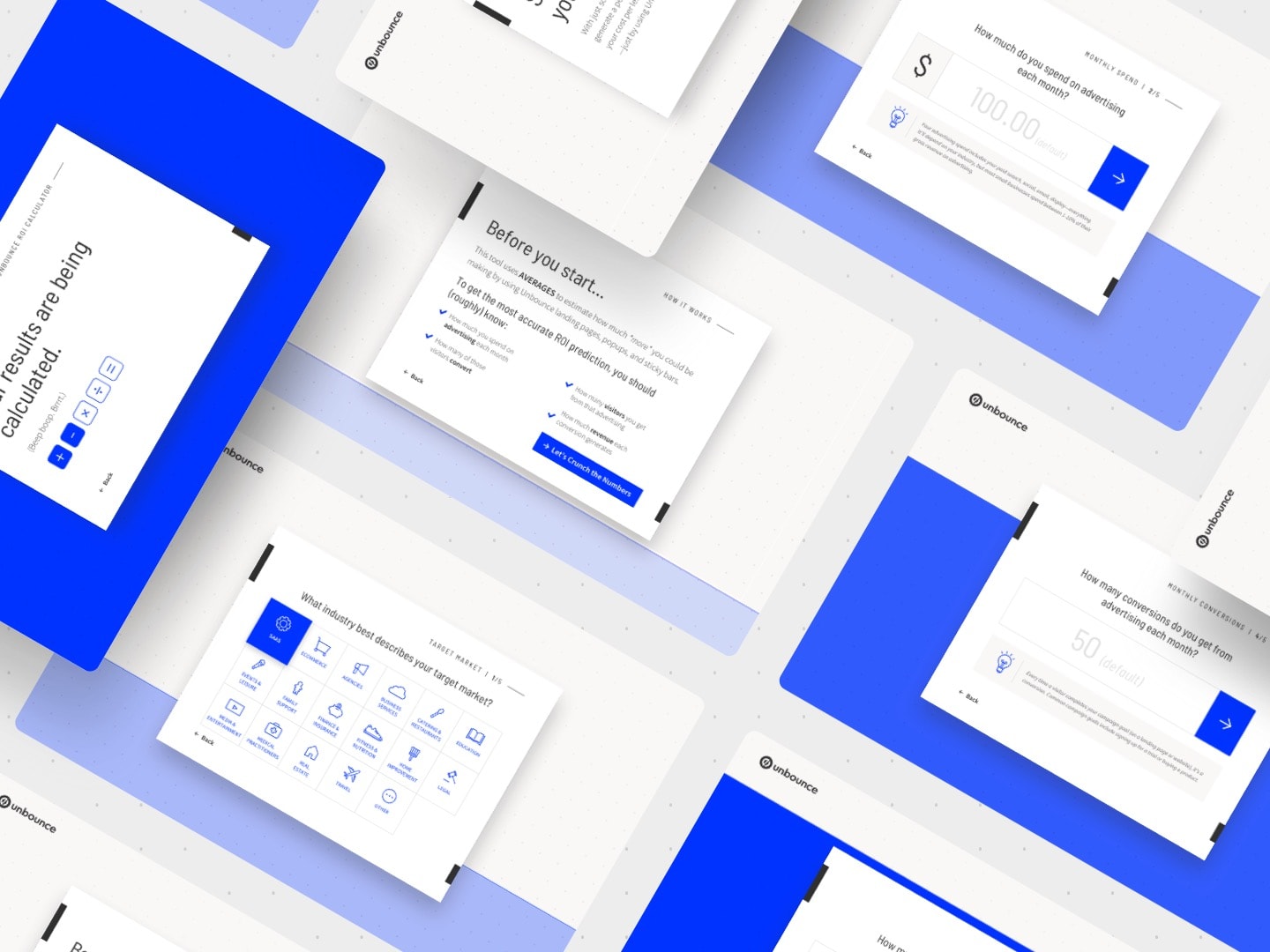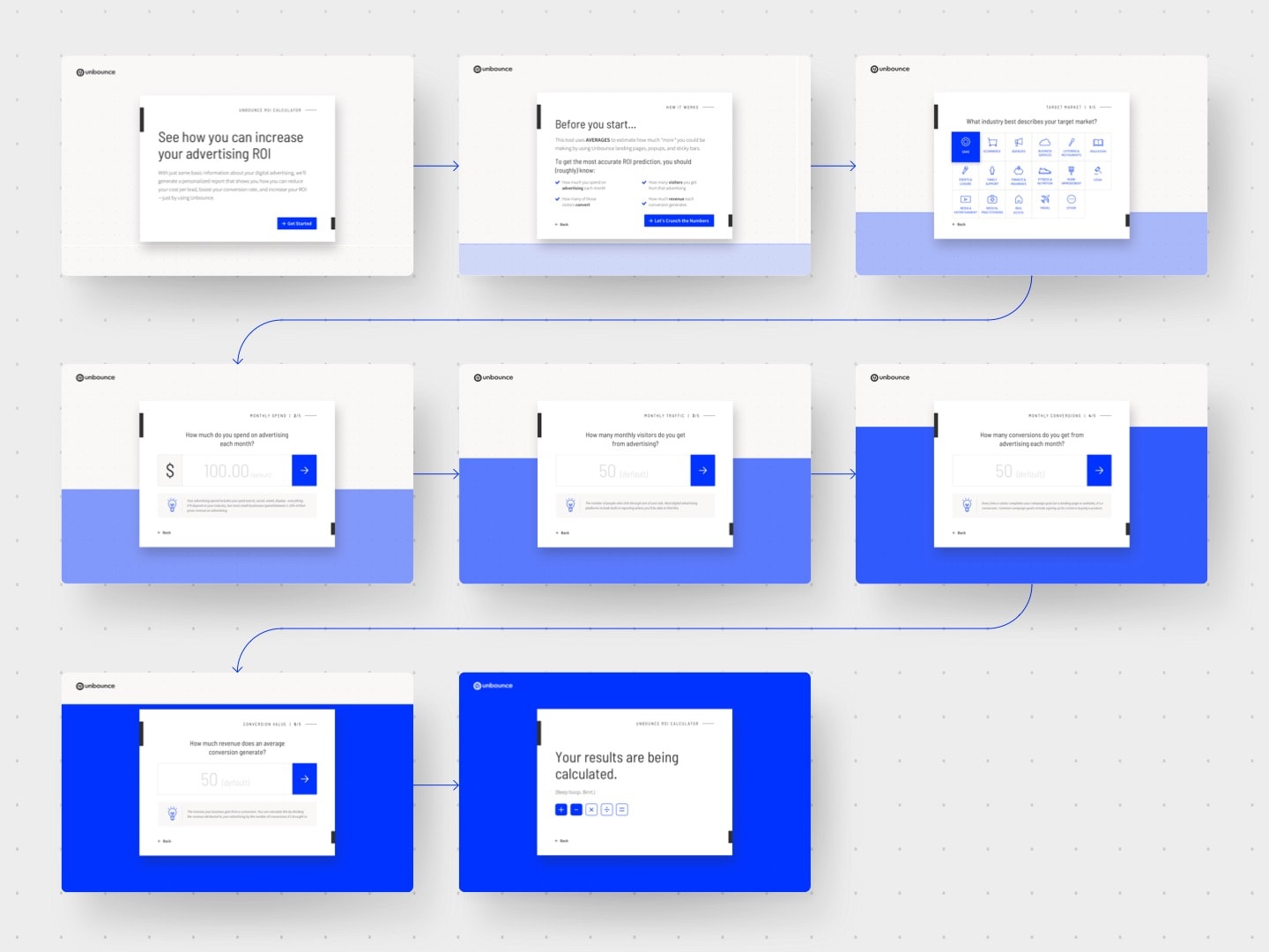 Unbounce ROI Calculator Process Mockups